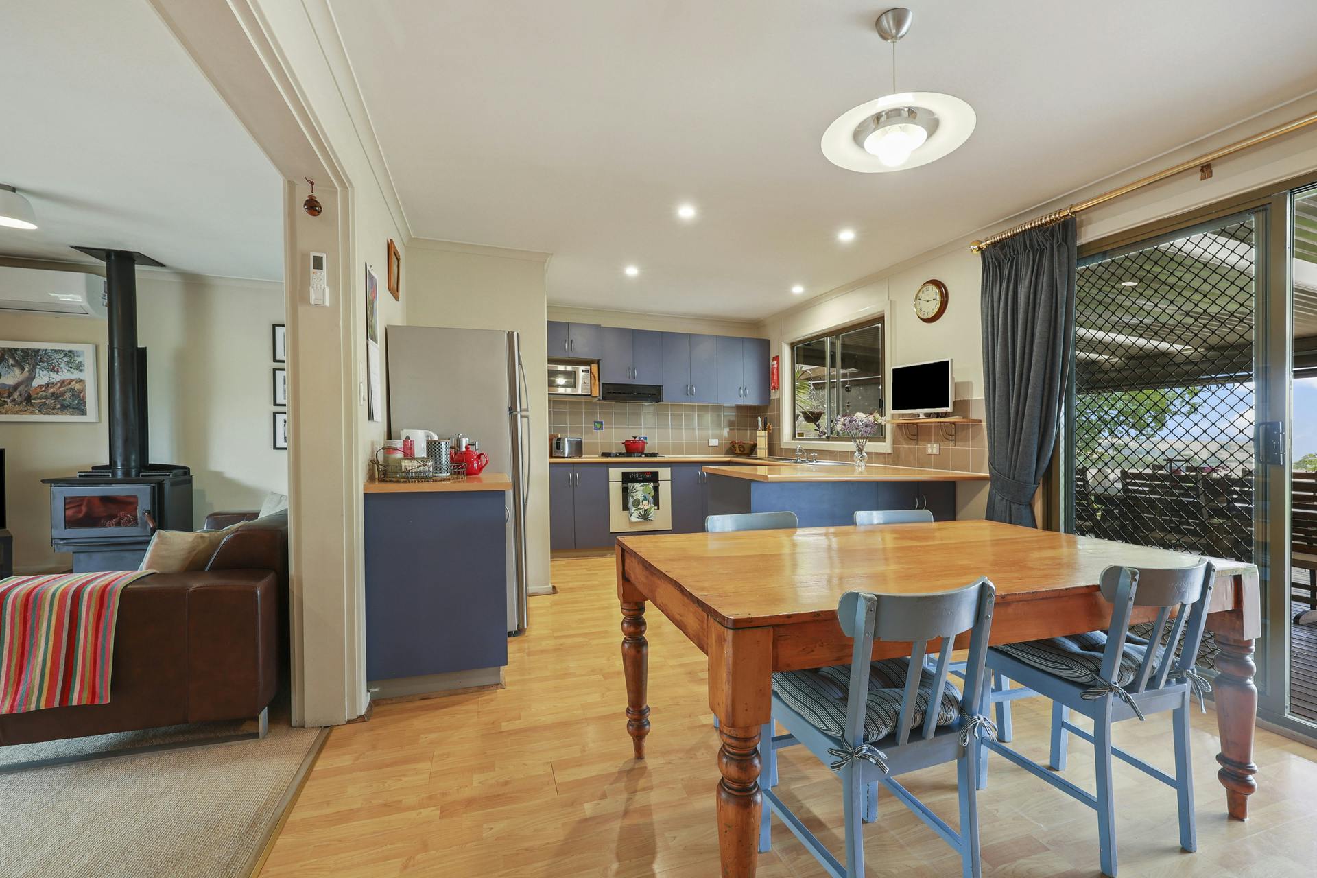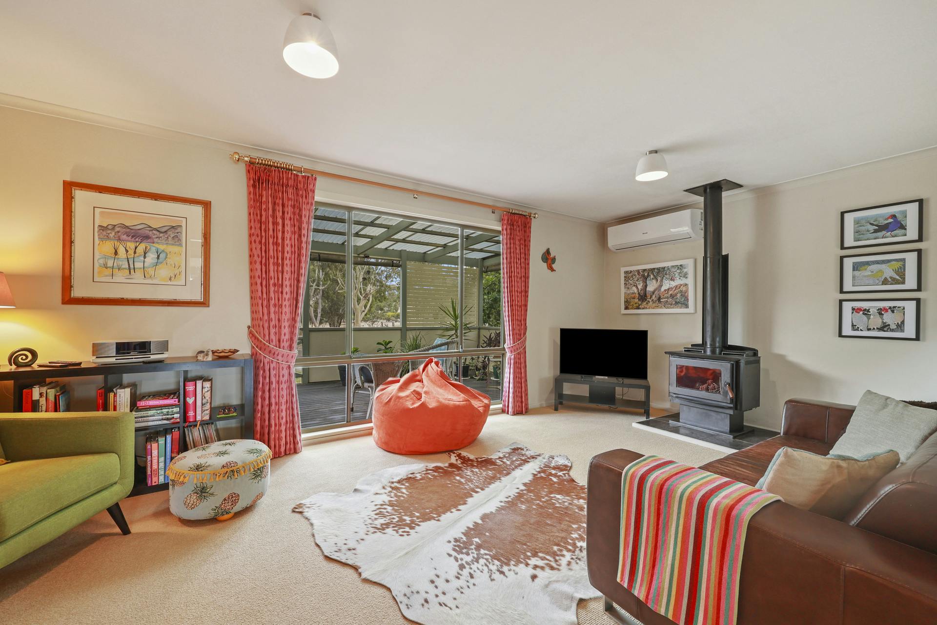 The family room features reverse-cycle air conditioning, a combustion wood fire, abundant natural light and access to a welcoming verandah – the perfect escape for quiet reflection and relaxation.