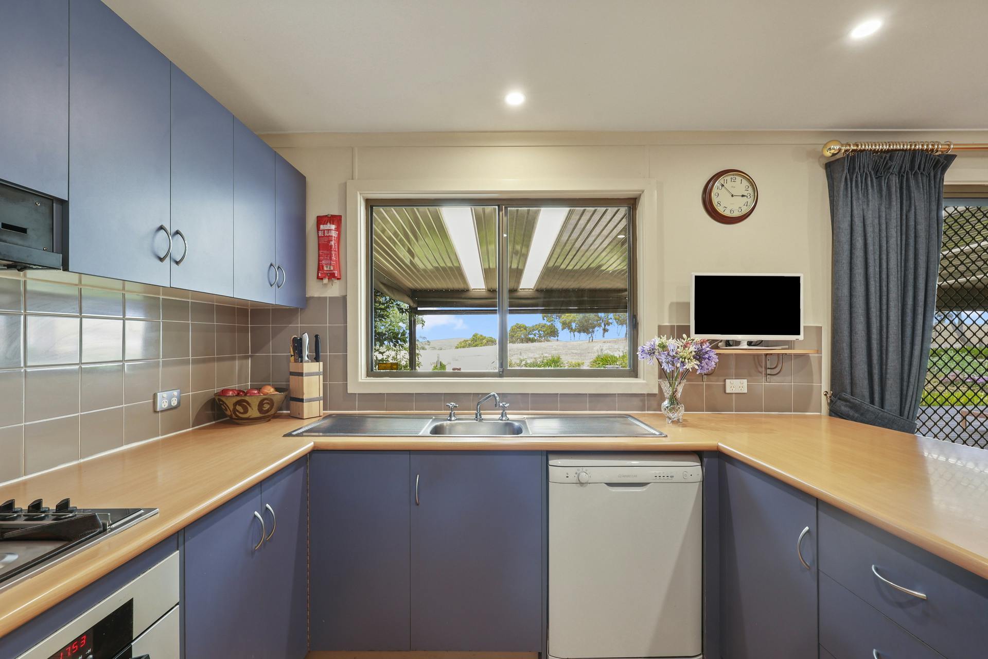 The modern kitchen showcases quality appliances, ample storage and a picture window framing tree-lined paddocks and valley views. The adjoining dining area is family friendly and opens to an impressive 68m2 covered outdoor deck with pull-down blinds, ideal for year-round entertaining while enjoying sweeping rural northern vistas and spectacular sunsets backing the unquestionable beauty of the Southern Mt Lofty Ranges. Completing the home is a separate commercial-grade kitchen currently used for the well-known Matchett Productions and Big Sissy Food labels – perfect for food enthusiasts or a small business venture.